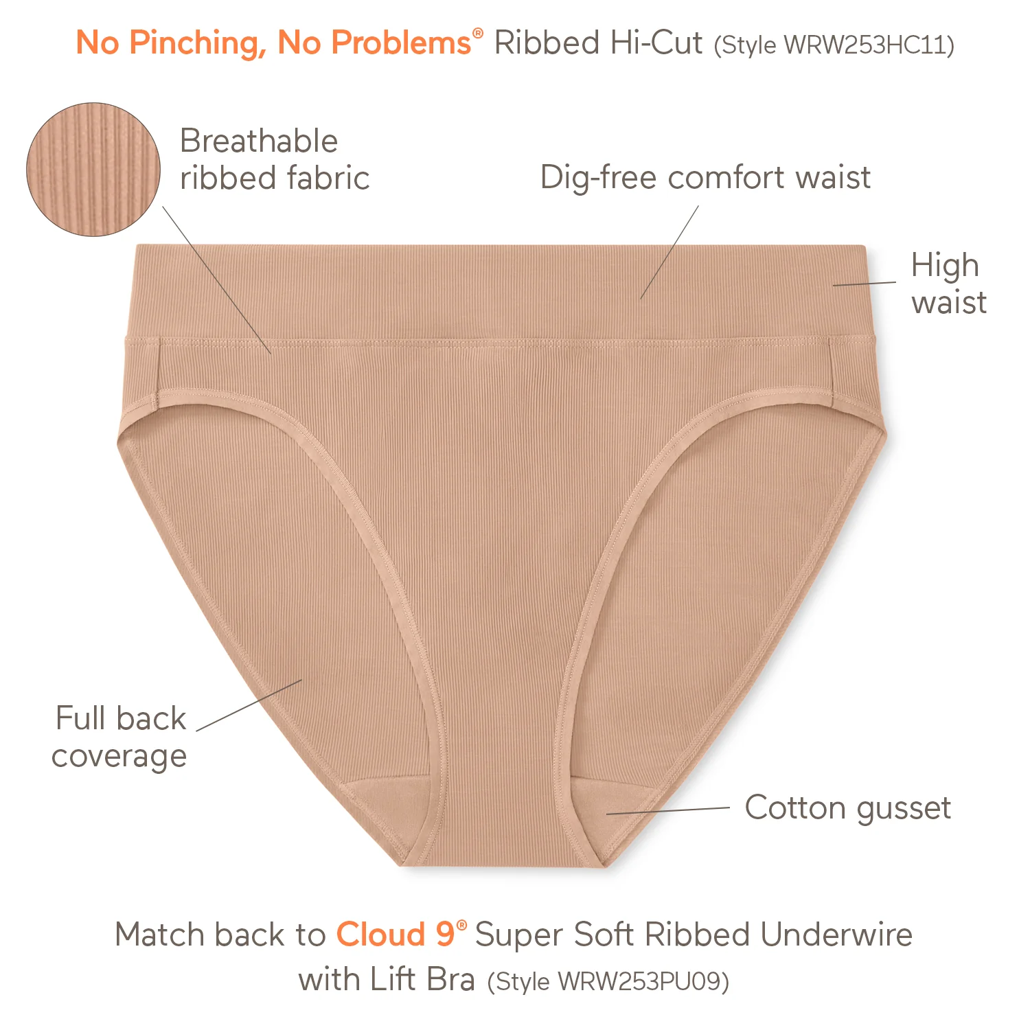 No Pinching, No Problems® Dig-Free Comfort Waist Ribbed Hi-Cut